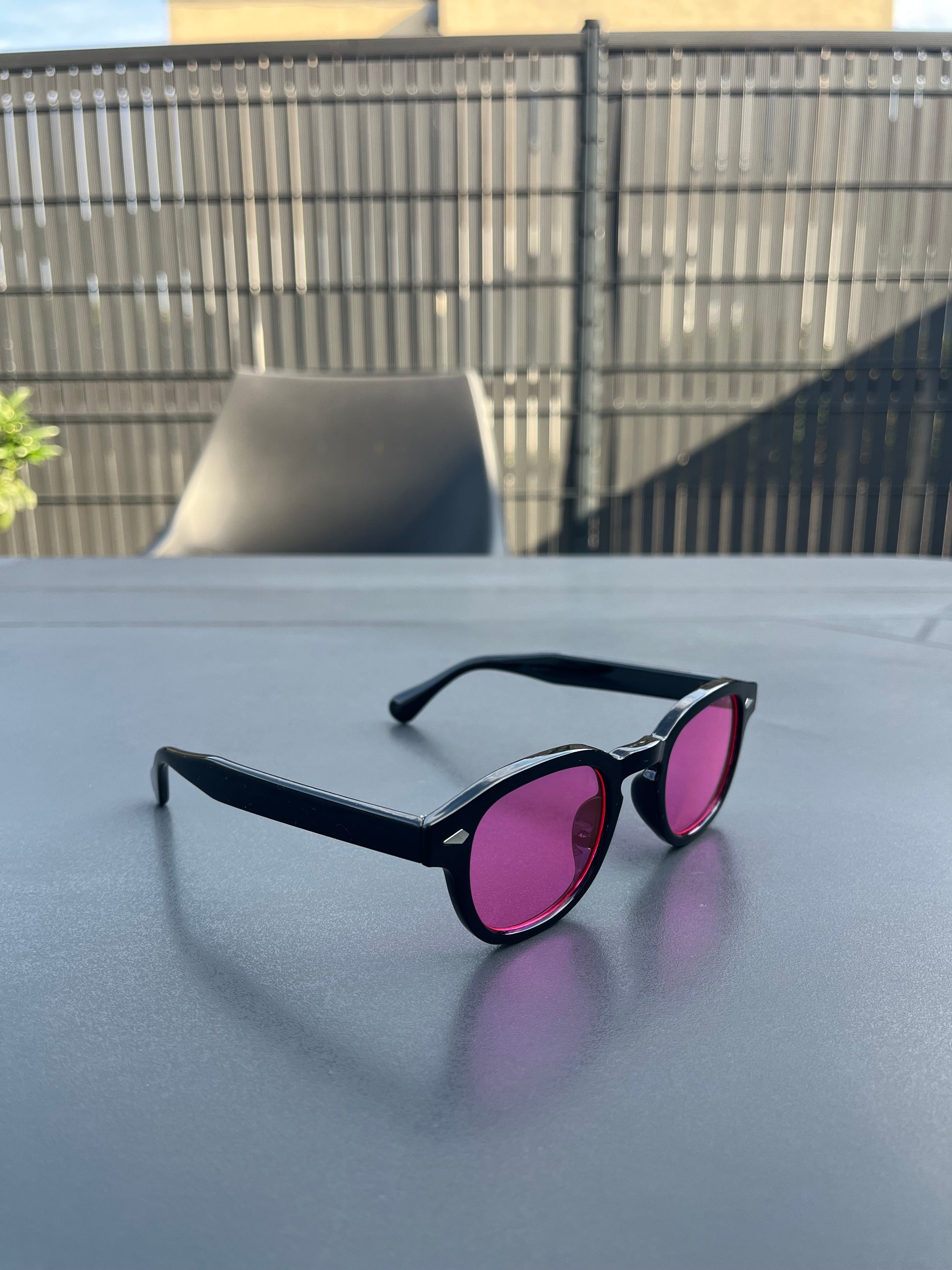 Monture noire profonde, verres roses miroir. Un design qui capte les regards et te donne instantanément une allure confiante et charismatique. Cette paire transforme ton style en un clin d'œil et te permet de te démarquer des autres, sans effort.